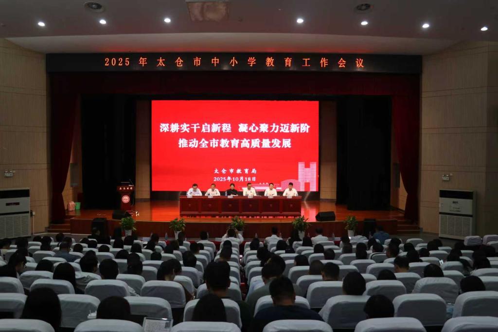10月18日下午,太仓市中小学2025年教育教学工作会议在江苏省太仓高级中学召开,会议主题是“深耕实干启新程,凝心聚力迈新阶,推动全市教育高质量发展”。市教育局分管领导、相关科室及直属单位负责人、各中小学党政主要负责人、中小学学科教研员、各高中校学科教研组长、高三全体教师、中小学部分优秀教师代表参加会议。市政府副市长万芬奇,市委教育工委书记、市教育局局长李广耀出席会议并讲话。会议由市教育局副局长吴健主持。