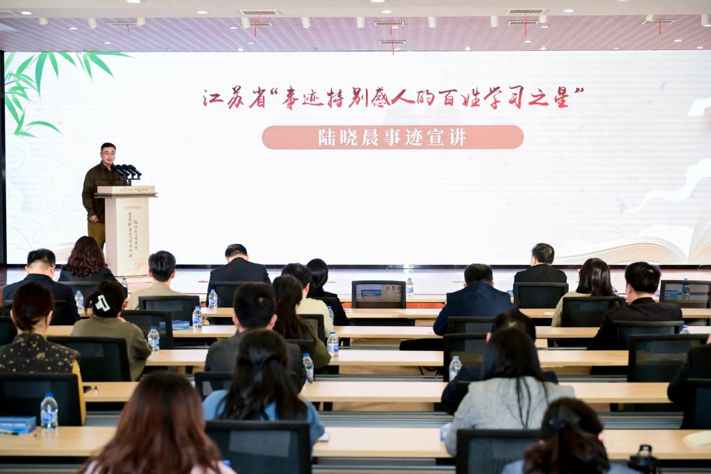 江苏省“事迹特别感人的百姓学习之星”陆晓晨进行了事迹宣讲,感人的学习故事深深打动了在场的每一位听众。